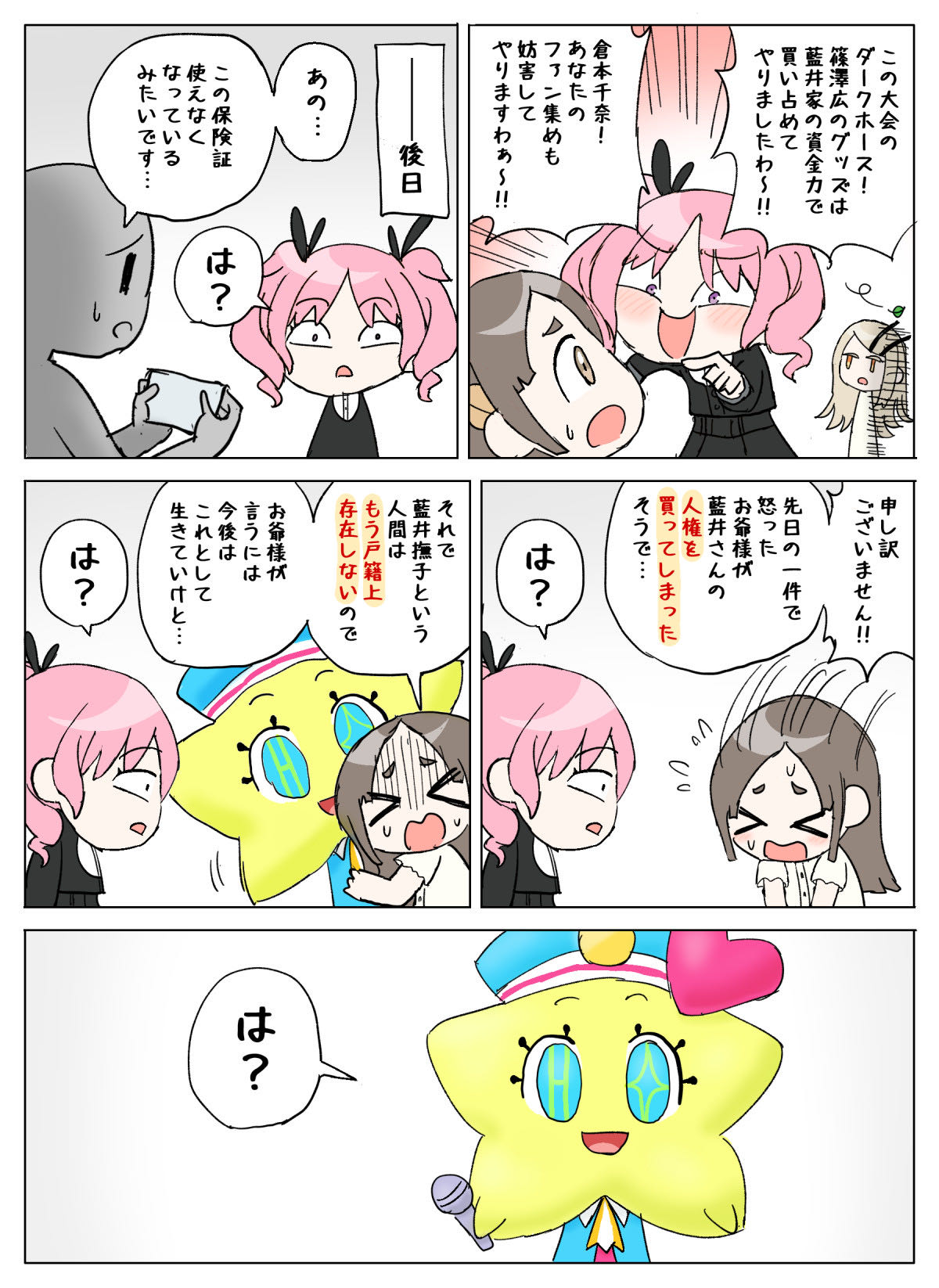 | … | 18026/02/18(水)16:17:42No.1403215186+>人権がないからほかの事務所のアイドルを壊してもセーフ? |