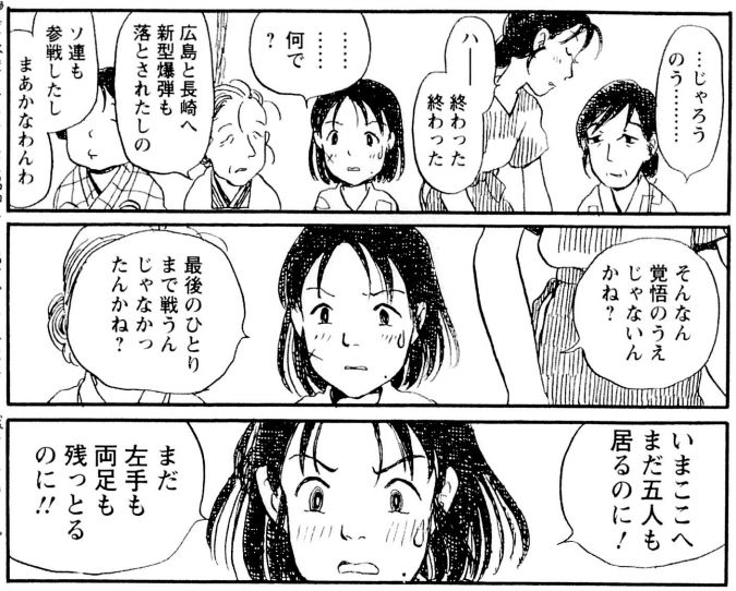 | … | 16526/02/18(水)19:55:45No.1403274890そうだねx5画像の台詞は本気でそう思ってるというより「今まで国がそういうノリで玉砕しろって言ってたから色々我慢してたのに今更何言ってんだよ」 |