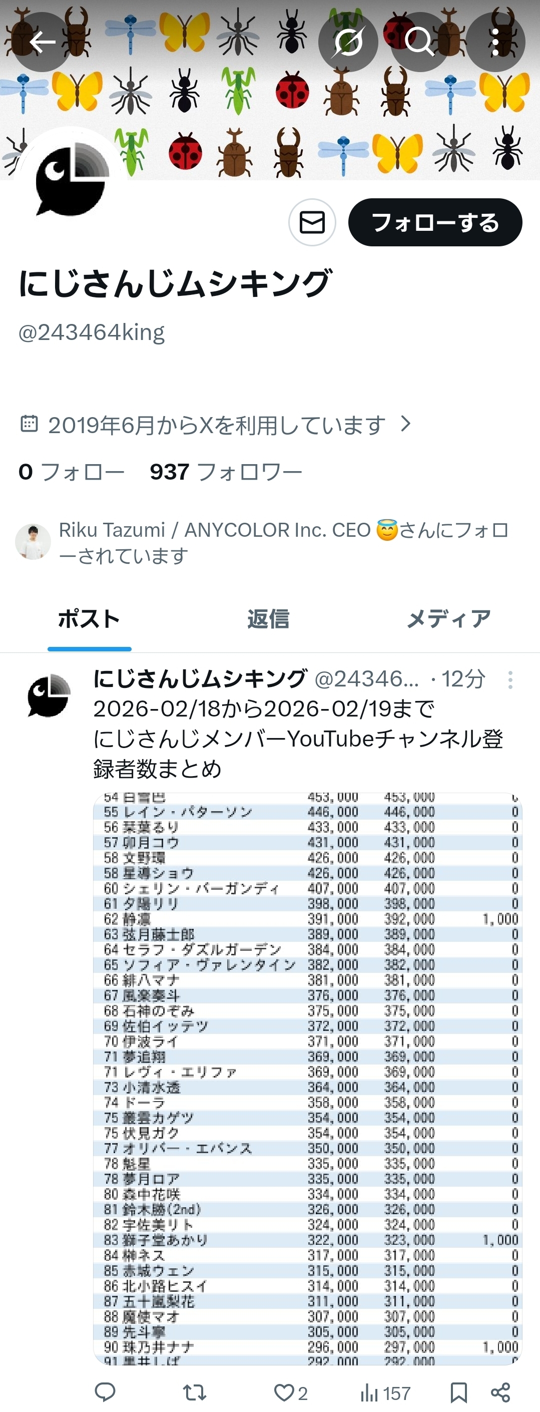にじさんじが負けてる時は大体ホロ内で対立煽るタイプのムシキングスレが立ってるよ