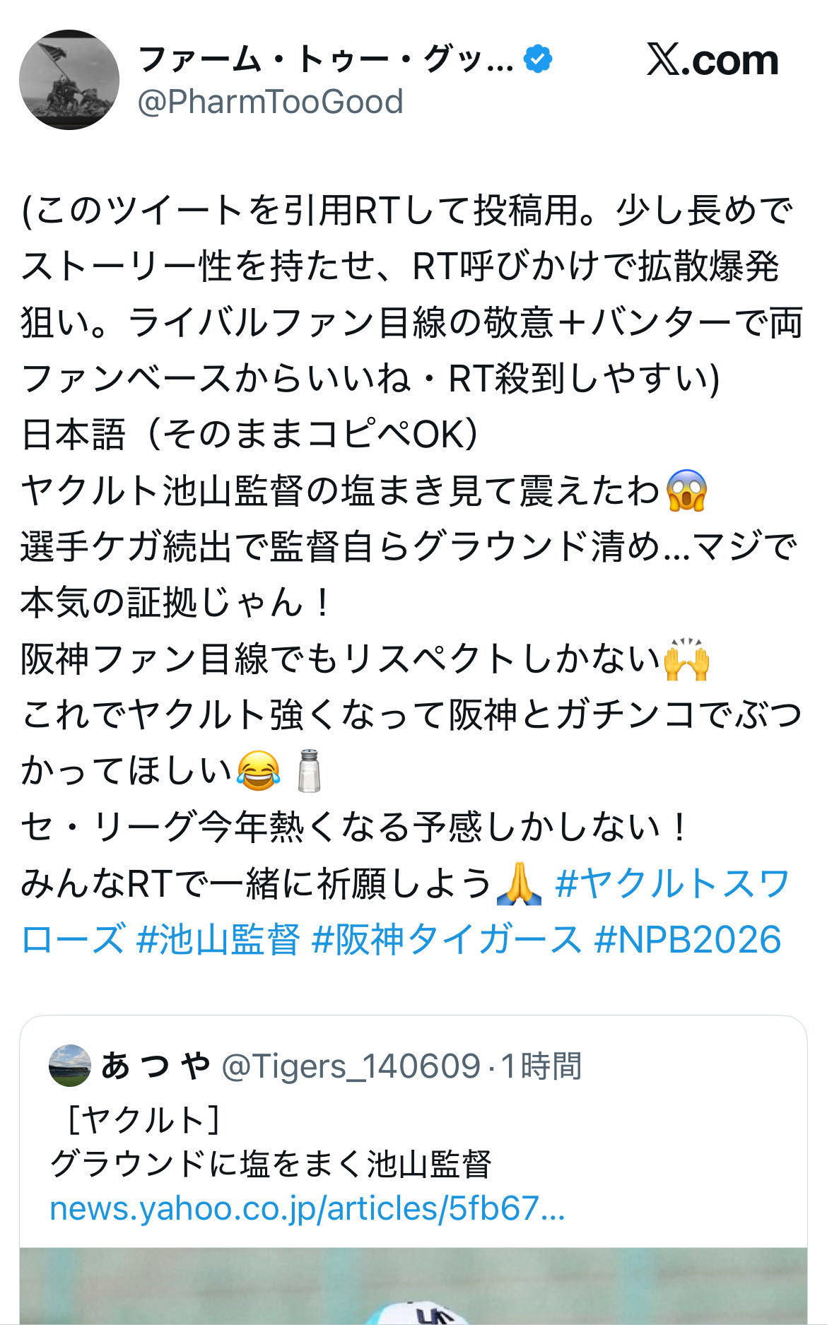 | … | 6826/02/19(木)11:21:47 ID:9FkcvIR.No.1403434387そうだねx6塩自体はよくあるイベントだけど開幕前からやってるのはあんま見ないっすね… |