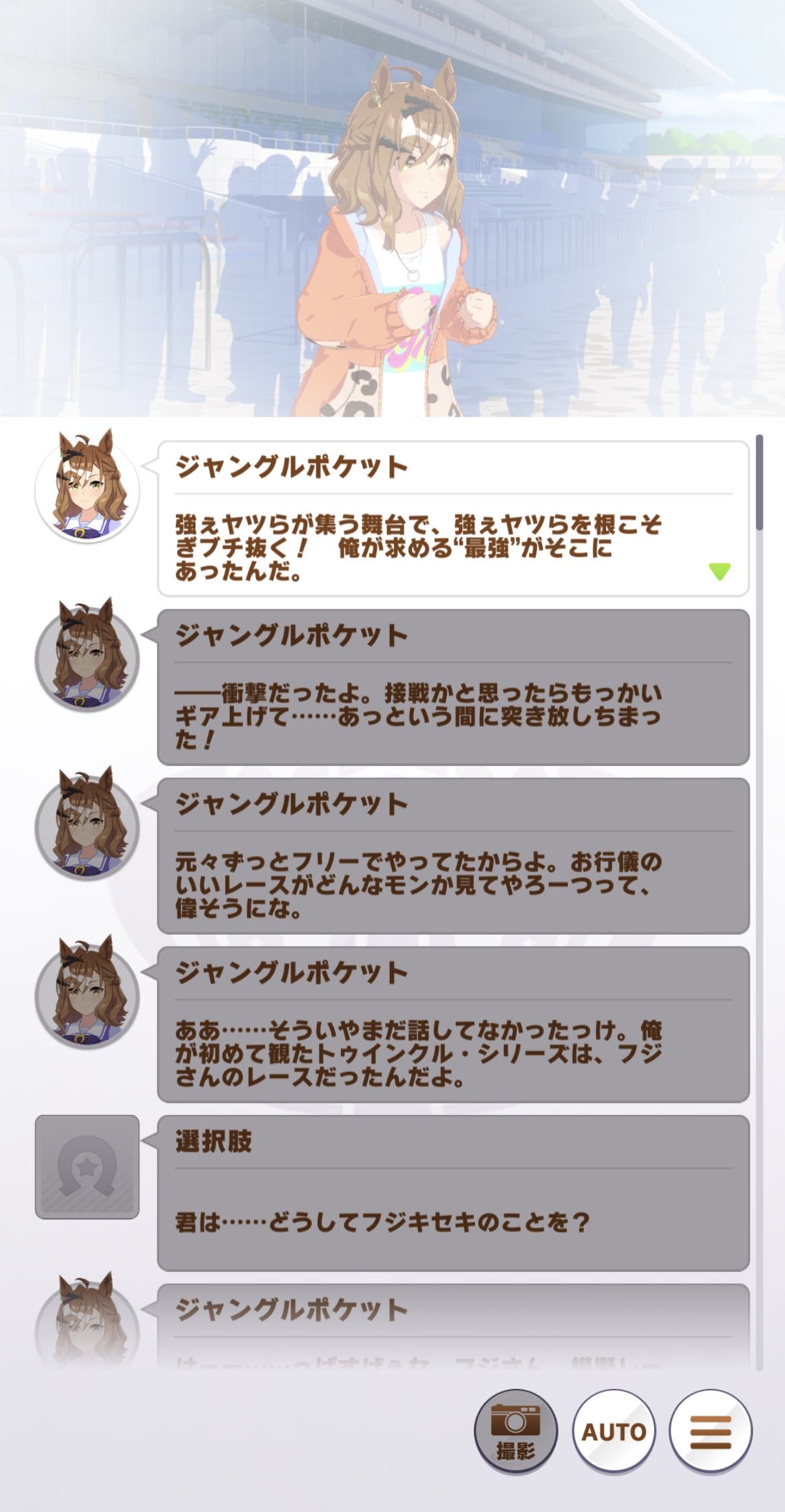 | … | 6626/02/19(木)11:37:44 ID:EoN8bNI6No.1403437374+>最近レース前にシングレBGM使ってるのがありがたいので継続してほしいです |