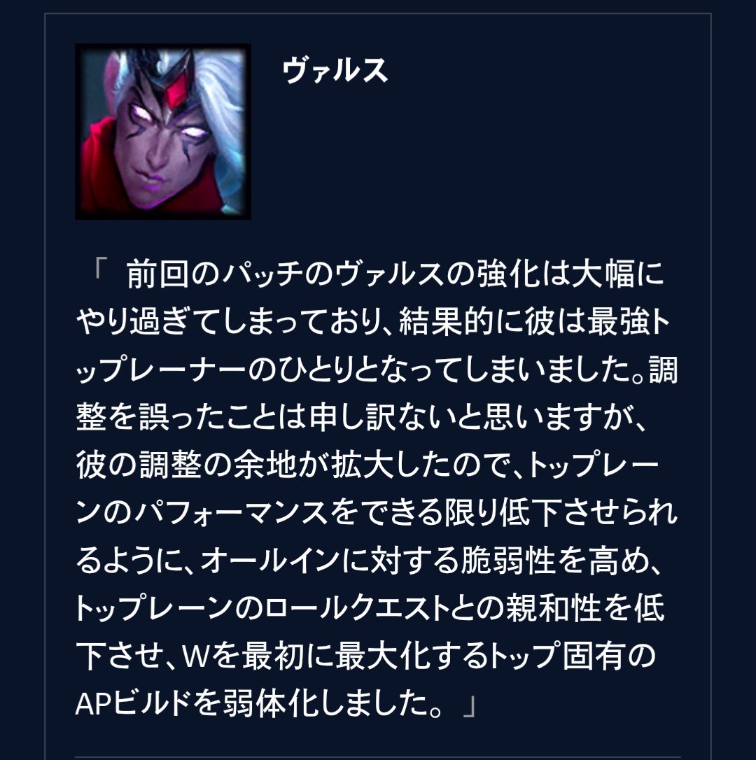 | … | 8726/02/19(木)10:21:17No.1403424923+>ナフィーリは現在ミッドレーンとジャングルでほぼ均等に使われていますが、現時点ではミッドレーンで強すぎる傾向にあります。 |