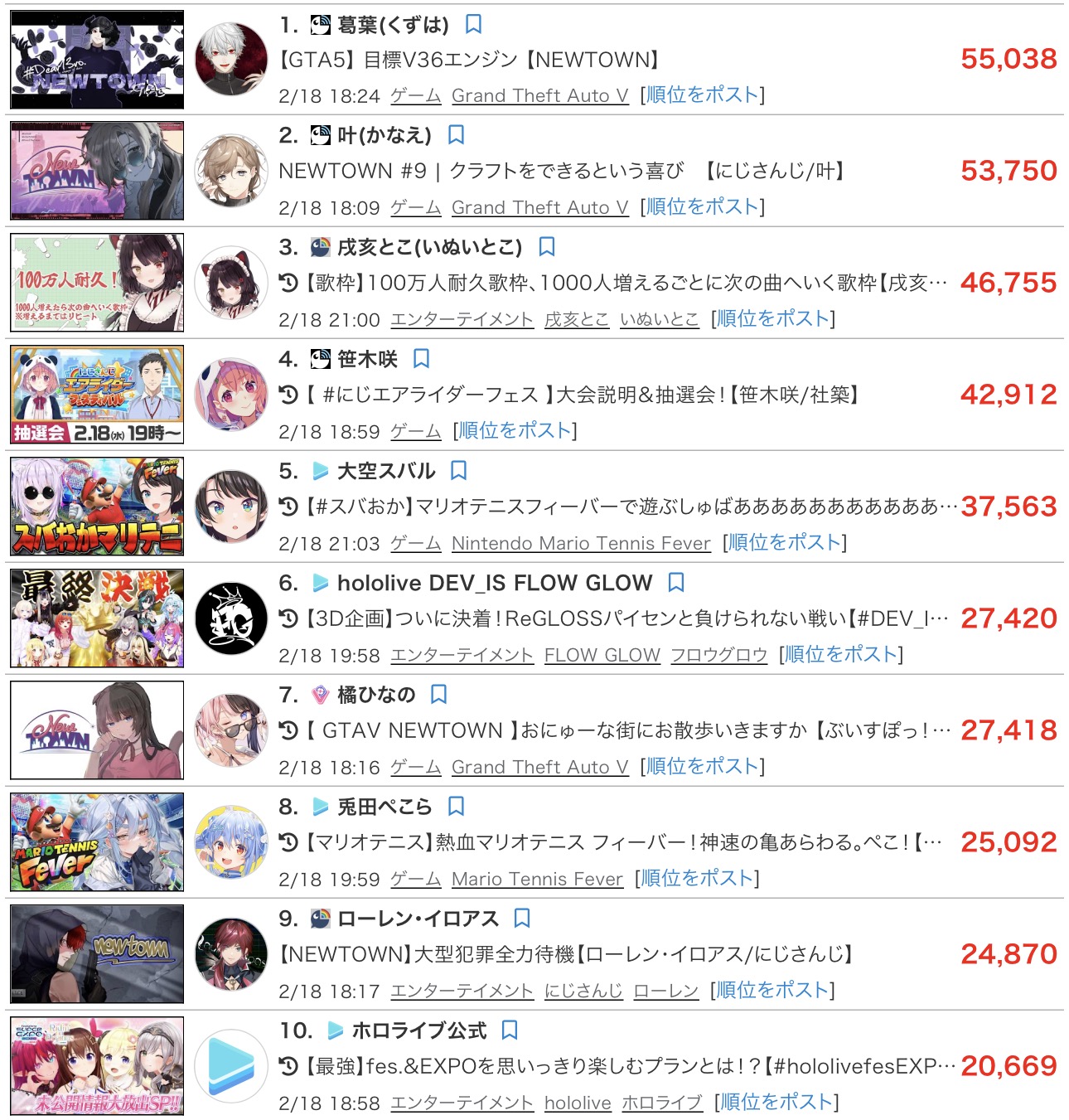 | … | 4626/02/19(木)15:53:08No.1403497918+CR主催と渋ハル主催はにじさんじのために主催してるものだから推しが参加しないのを祈ることしかできない |