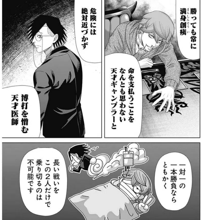 | … | 1726/02/19(木)13:54:01No.1403471270そうだねx2この展開だとなんだかんだで医者がワンヘッドやって死にそうな気がしてきた |