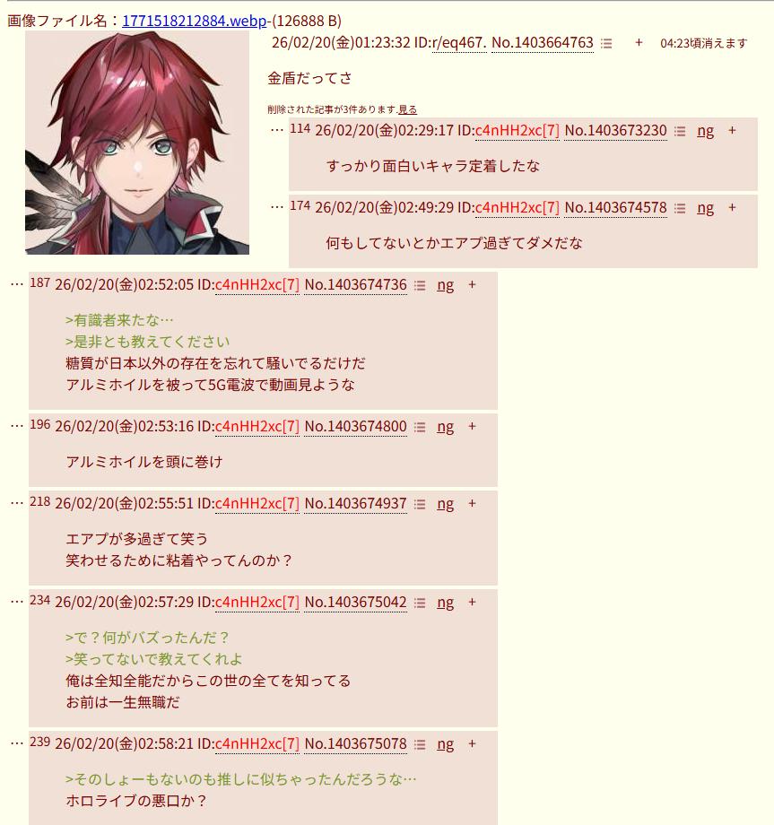 126888 B26/02/20(金)01:23:32 ID:r/eq467.No.1403664763+ 08:15頃消えます