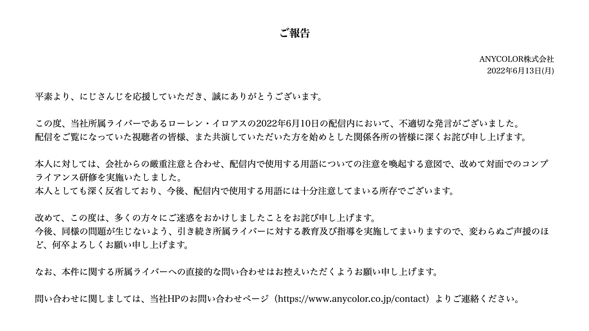 にじ公式の謝罪文の書き方中学生未満と馬鹿にされるきっかけである