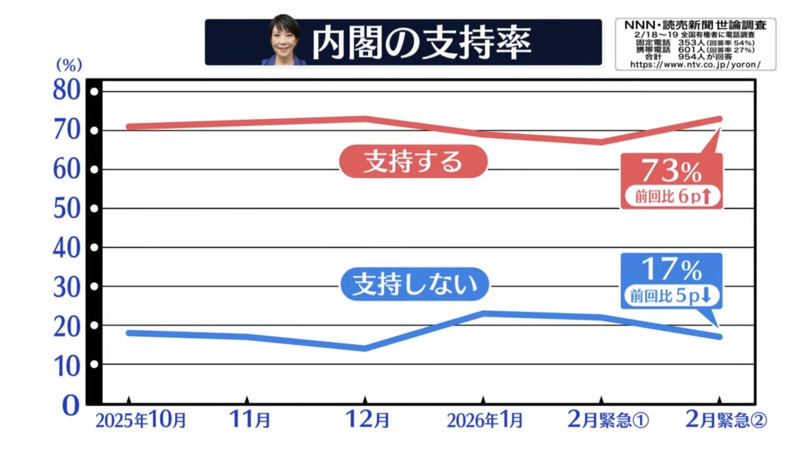| … | 2426/02/20(金)06:13:07No.1403682551+高市氏はまだ何もしてないから支持率が高いだけとかいうニュース記事もあって笑う |