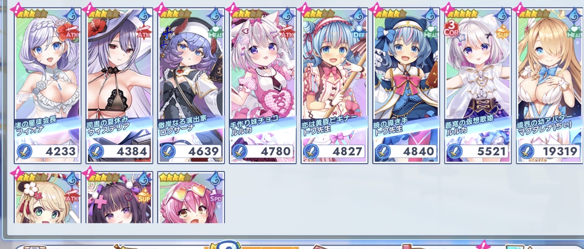 | … | 34026/02/20(金)18:39:46No.1403820799+ルルカが水で来たってことはレインボールルカ編成は遠ざかったか 今一番近いのって星見姉妹の4だっけ |