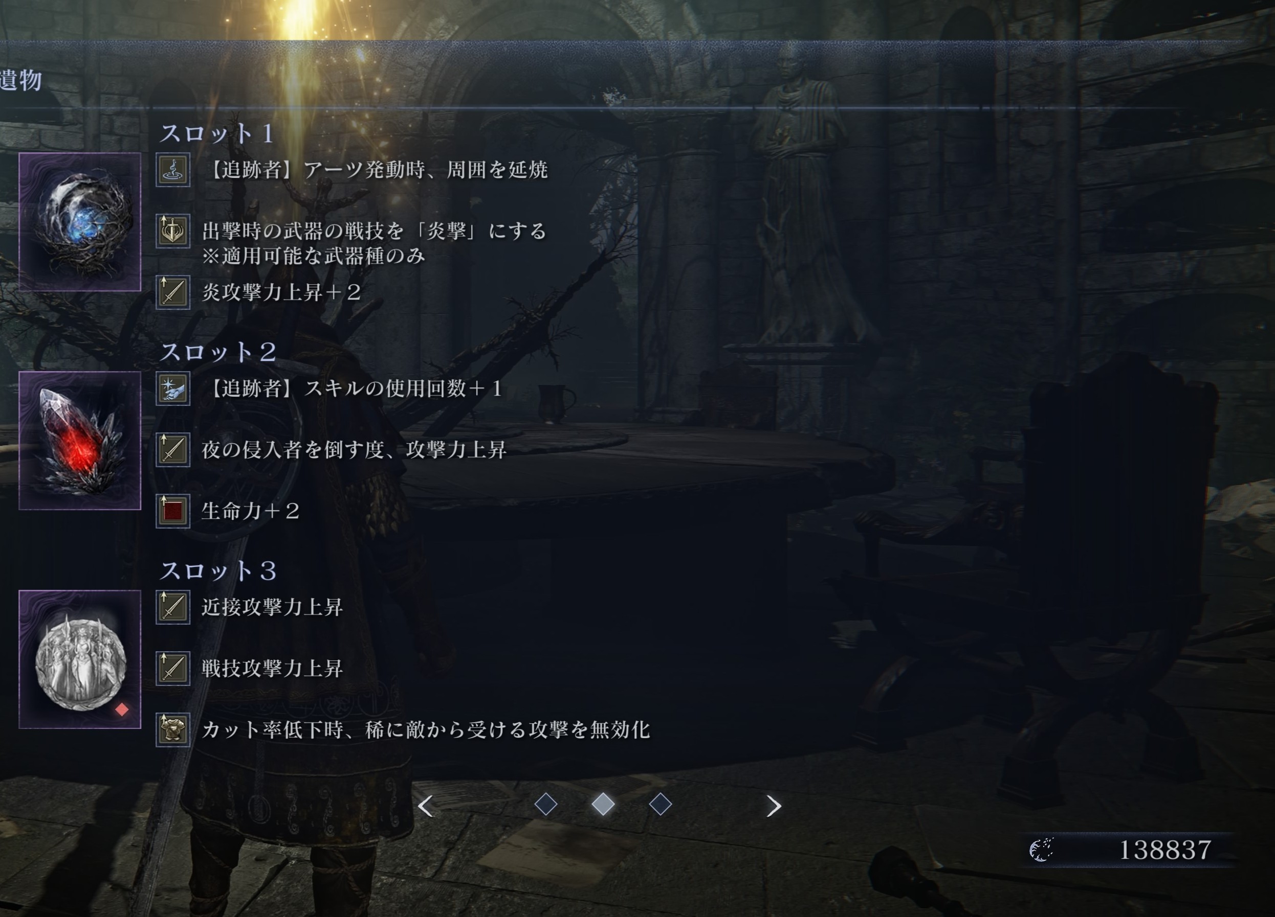 | … | 7526/02/20(金)19:00:02 ID:LSueCVhQNo.1403827527+カンスト帯で合う学者の遺物と立ち回りみて学んだけど遺物はアーツ継続ダメと技量上昇くらい、立ち回りは夜ボスにナイフデバフだけが多いなもうみんな普通に刺剣で殴り殴りしてるわ |