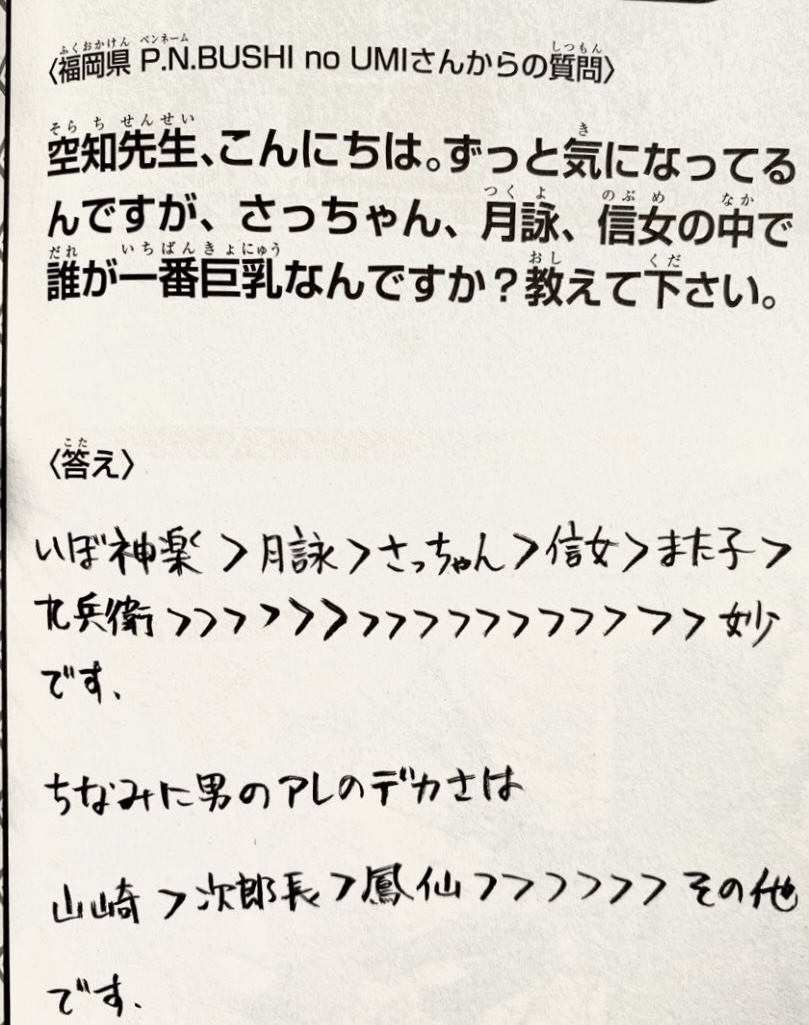 | … | 17026/02/20(金)19:16:53No.1403833164+神楽は本編時点で排卵日も来てるからな |