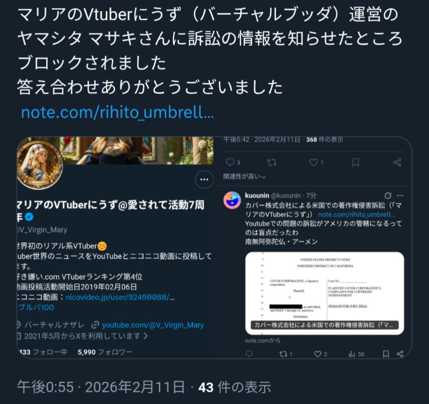| … | 3426/02/20(金)19:32:43No.1403838930そうだねx7弁護士の用意できた? |