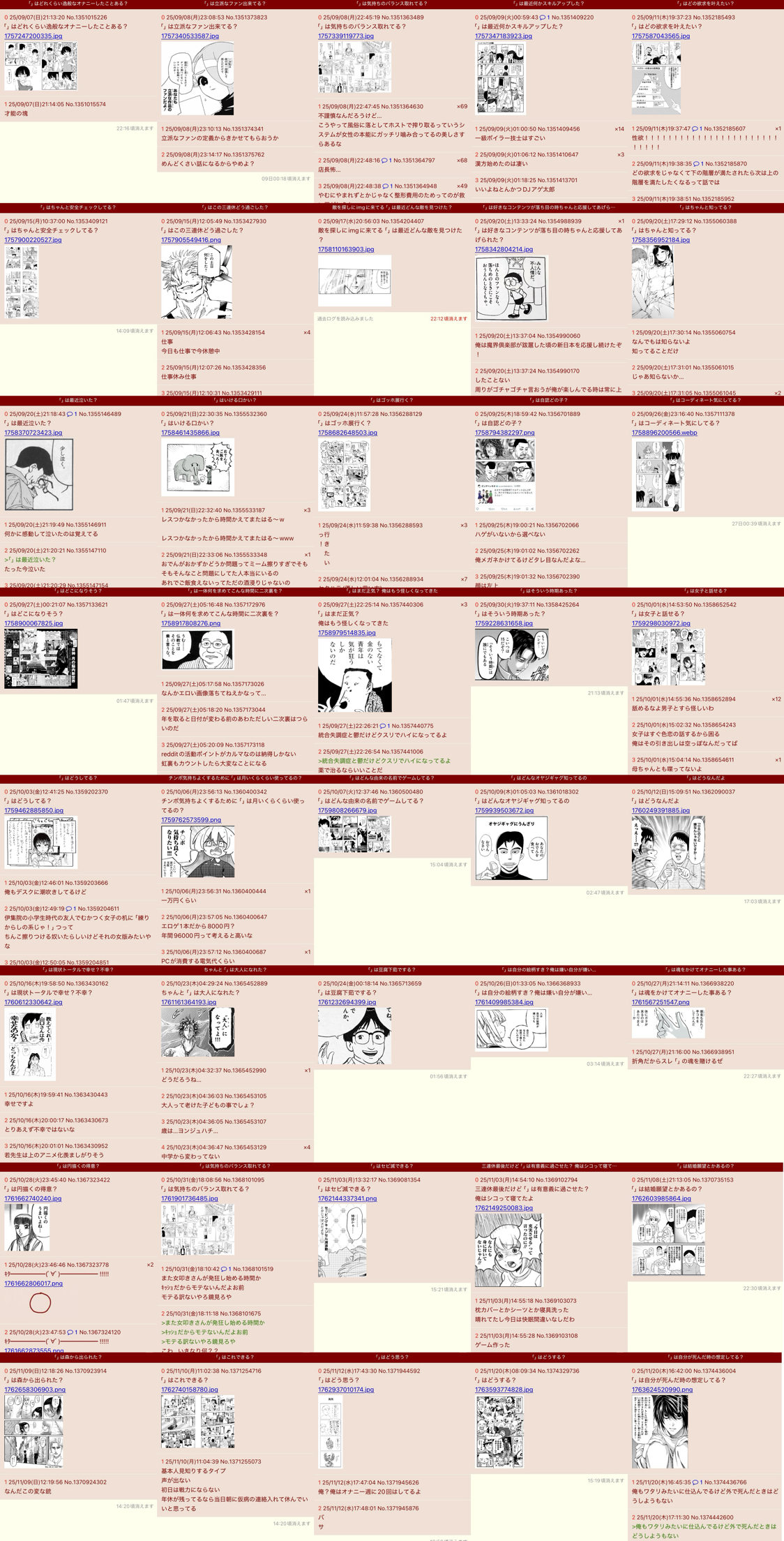 | … | 526/02/20(金)21:24:40No.1403885416+なんかひとつ立ったら同じようなスレ立ちまくるのっていつものいもげじゃ… |