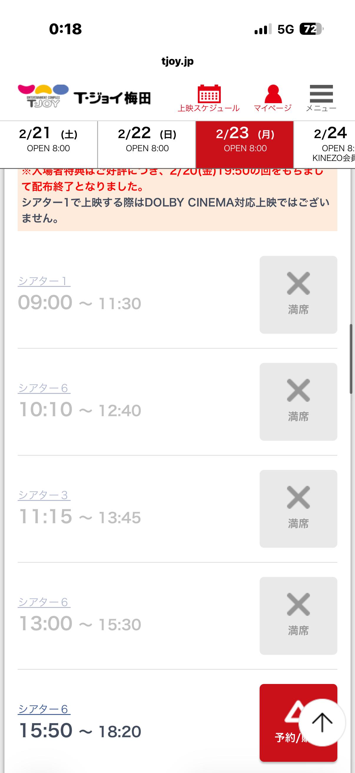 | … | 7126/02/21(土)00:17:28No.1403952065+折角だからいいとこで見よう計画が平日でも予約無しだと駄目かもしれん…って不安に襲われている |