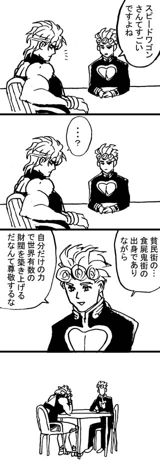 | … | 3126/02/20(金)23:42:19No.1403941760+>ずっとジョースター家とDIOの宿命だと思ってたが言われてみればDIOとスピードワゴンの対比でもあったのか |