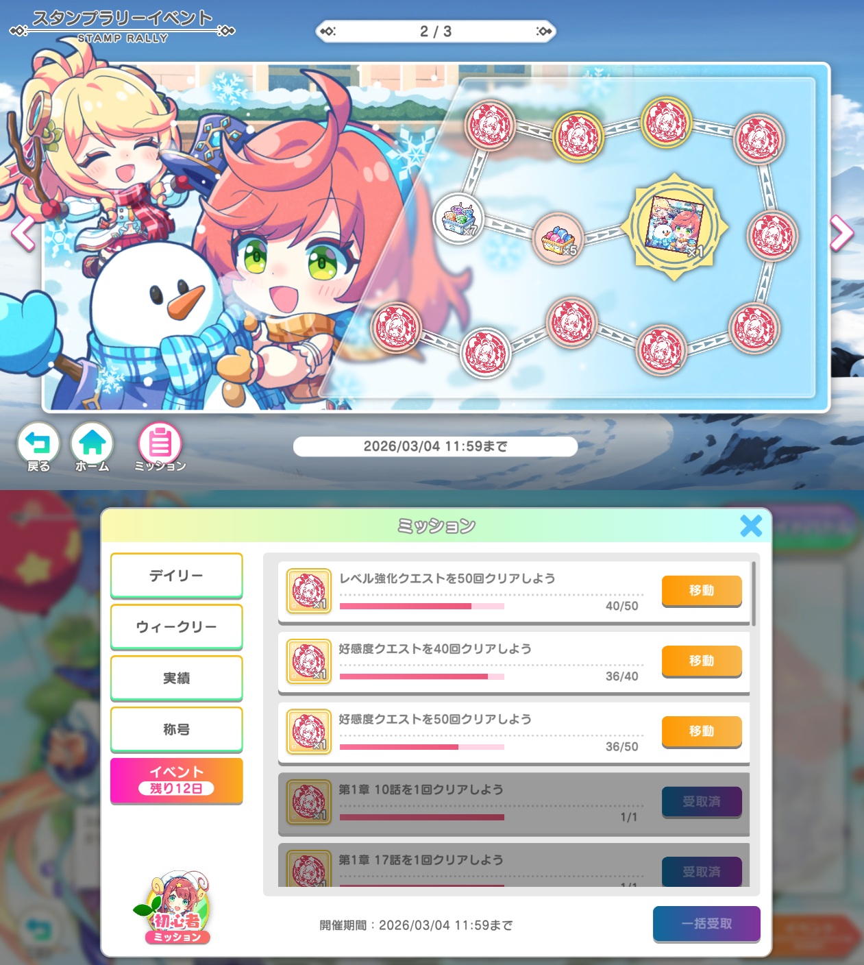 所持品の消費アイテムを全て開けて雪属性の星3キャラと星2キャラに入れるんだよ