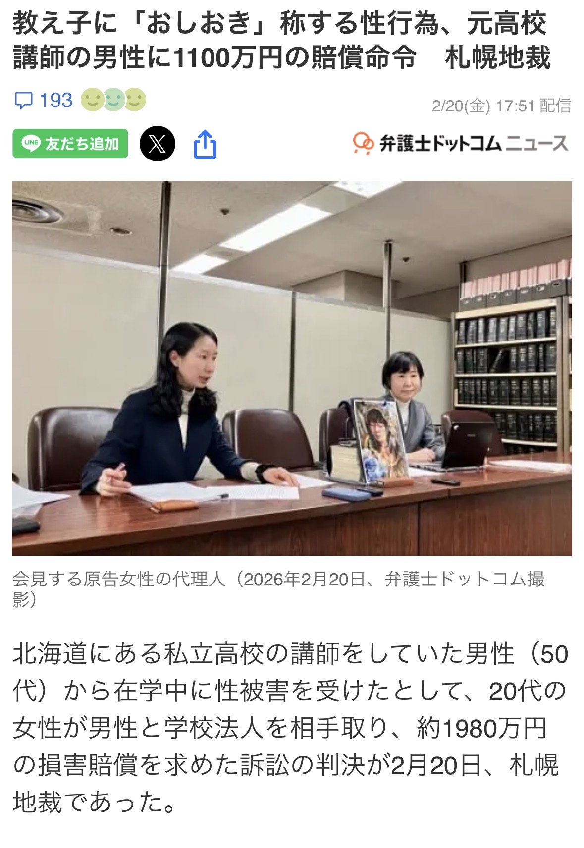 | … | 4826/02/21(土)01:36:59No.1403970081そうだねx1>弁護士.comもここまで詳細に書く必要あったかな!? |