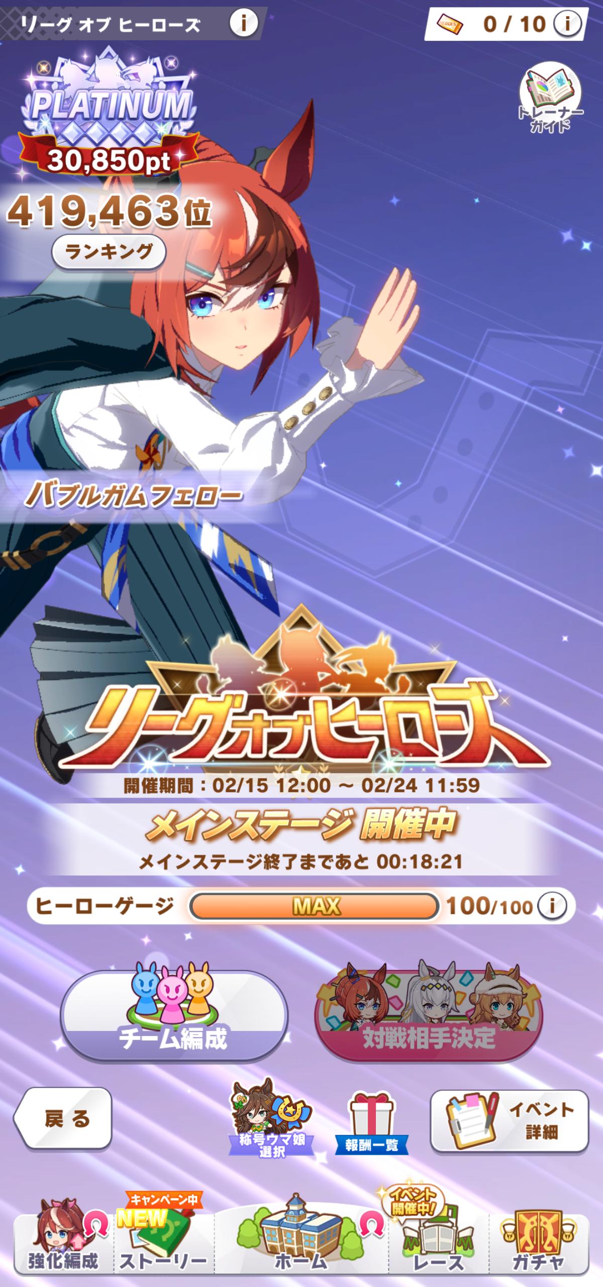 | … | 32026/02/21(土)11:48:23 ID:UDhPN5rENo.1404039241+サービス開始から2022春まではチャンミで勝てる脚質がほぼ逃げと追込だけでしたね |
