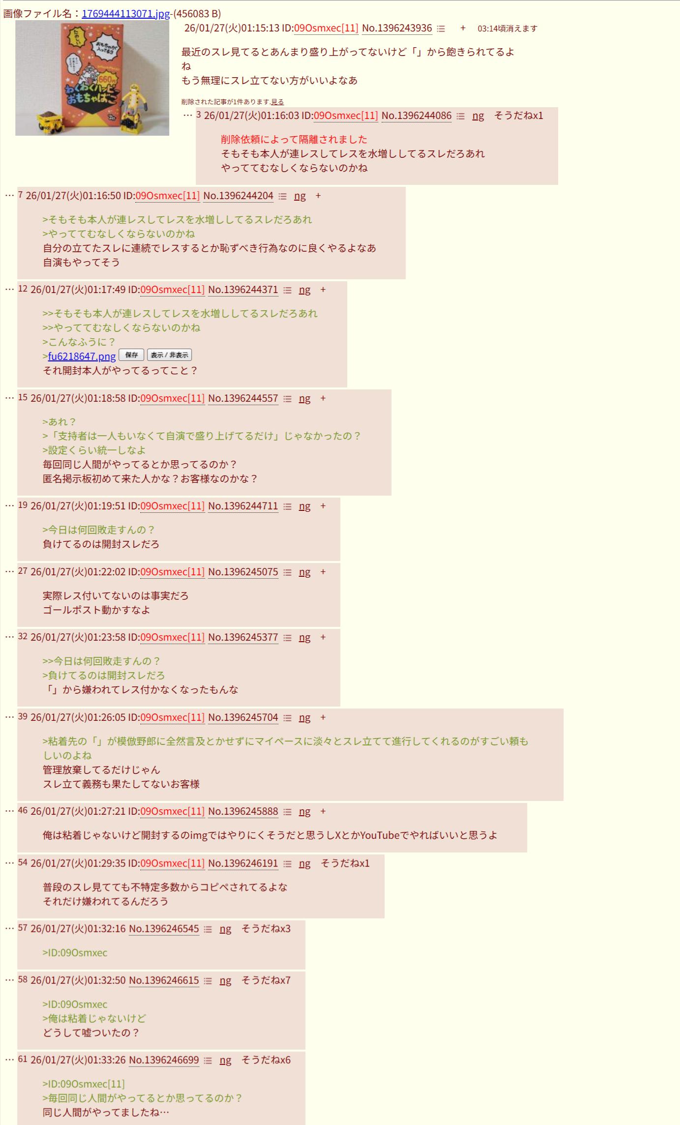| … | 2026/02/21(土)11:22:06No.1404033003そうだねx3わくわくハッピーおもちゃばこ作った人が立ててるのかなこのいつもの粘着スレ |