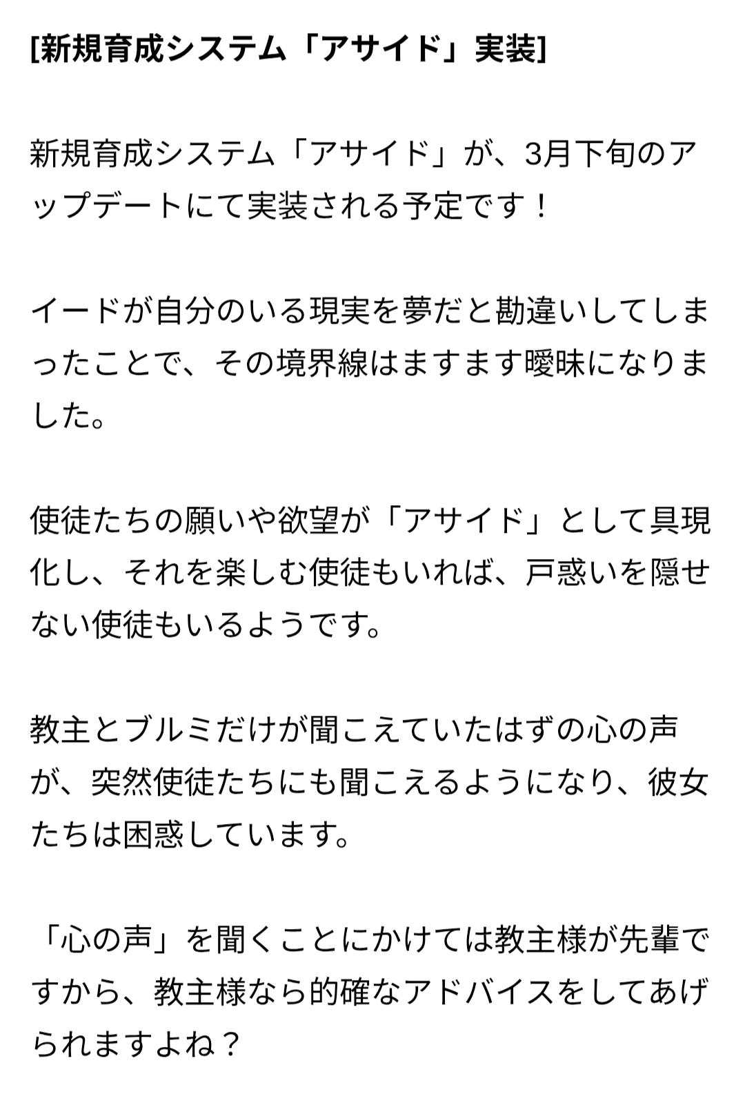 | … | 92626/02/21(土)12:58:48 ID:IJ7DsOiMNo.1404057999+>あ…あ…あの…ところでエーリアスに降り立った時から教主を支えてくれてる司祭長の実装はいつになるにゃん…? |