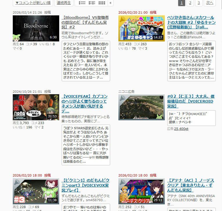 | … | 57026/02/21(土)15:20:20No.1404092578+>むしろわりと人気あるのにニコニコもYouTubeにも動画あげてる人は聖人だと思うよ |