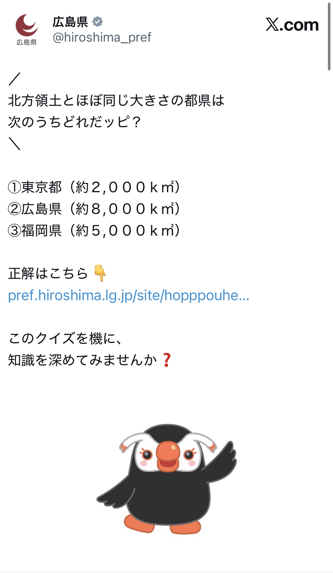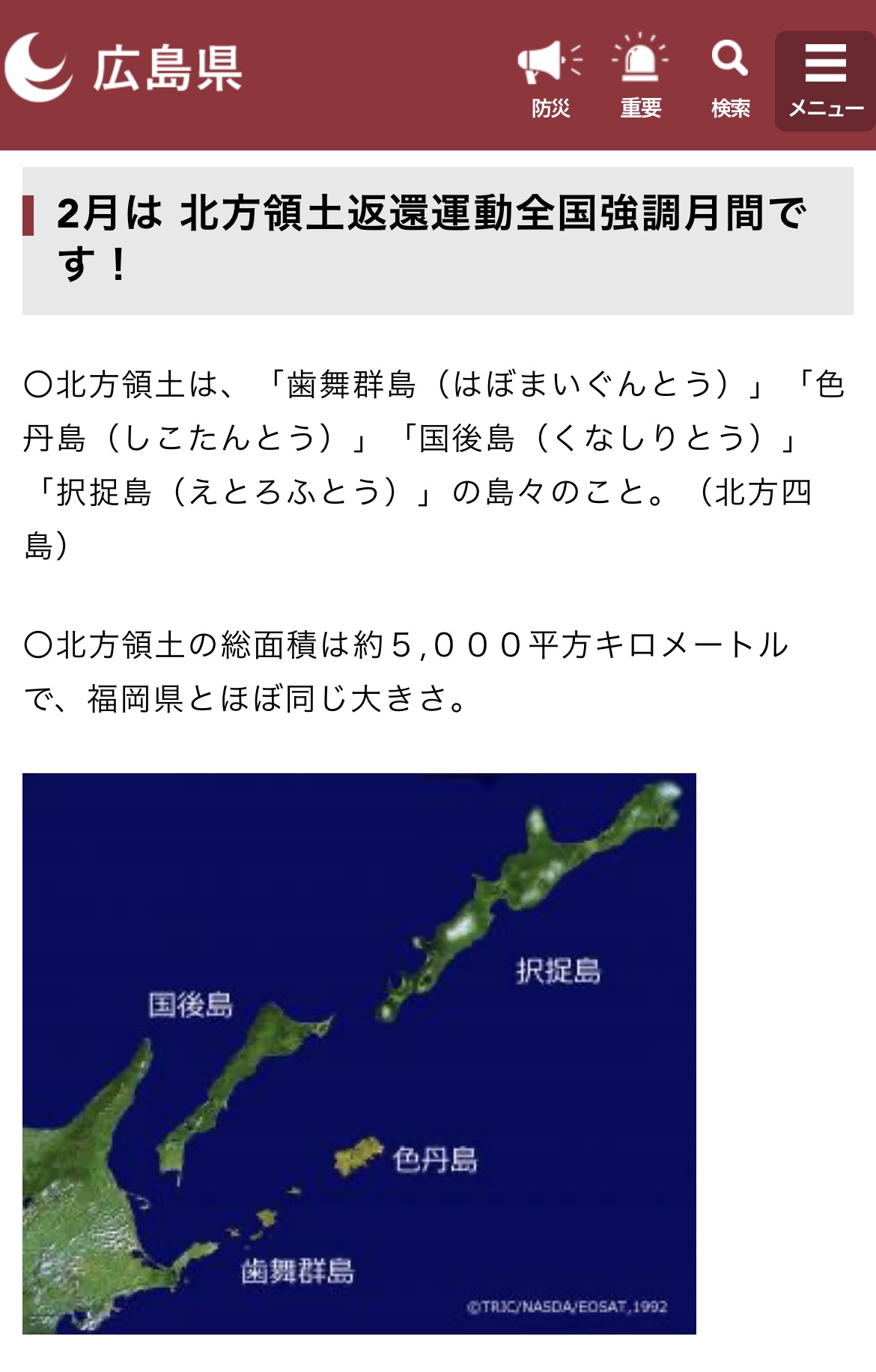 | … | 10326/02/21(土)18:07:25No.1404136256そうだねx2>北海道のガキは幼少期からエリカちゃん思想を植え付けられるしありとあらゆる場所に北方領土についての看板があるッピ |