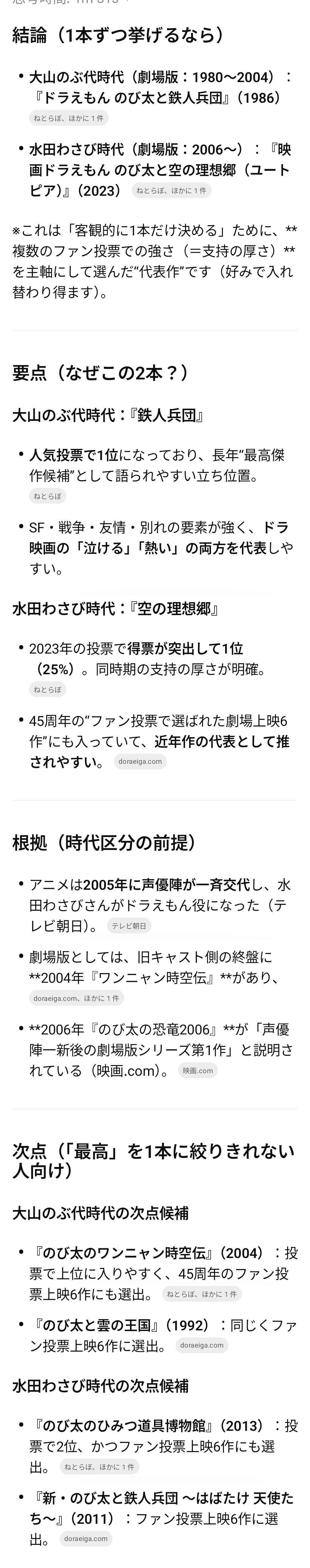 | … | 1426/02/21(土)16:25:57No.1404109571+ちょっとGPTに映画ドラえもんの最高傑作聞いてみて |