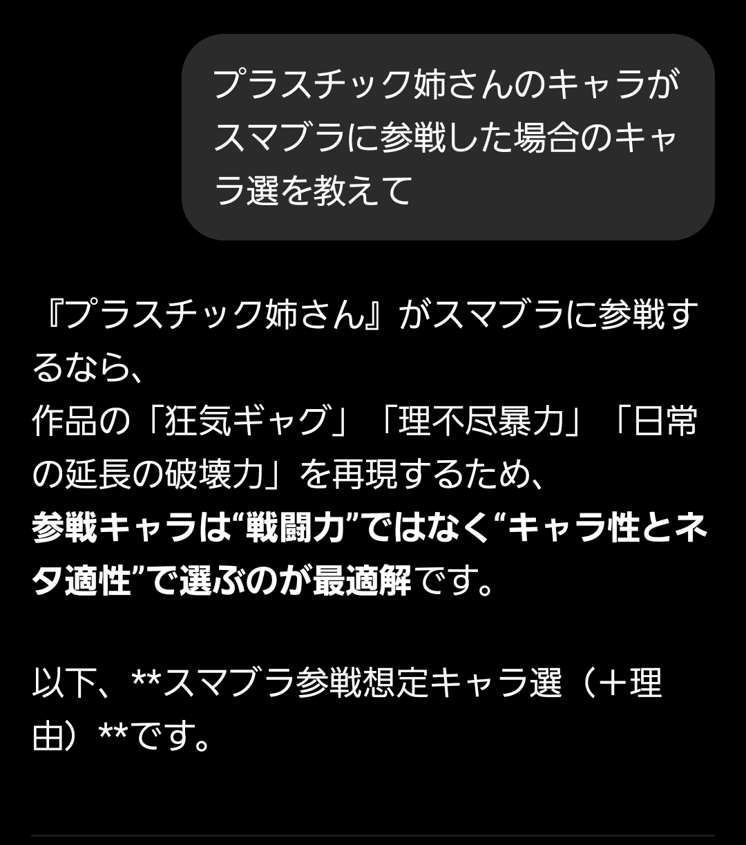 | … | 5326/02/21(土)17:41:48No.1404129578+けどAIにバロックがスマブラ参戦考えさせるの楽しかったよ |