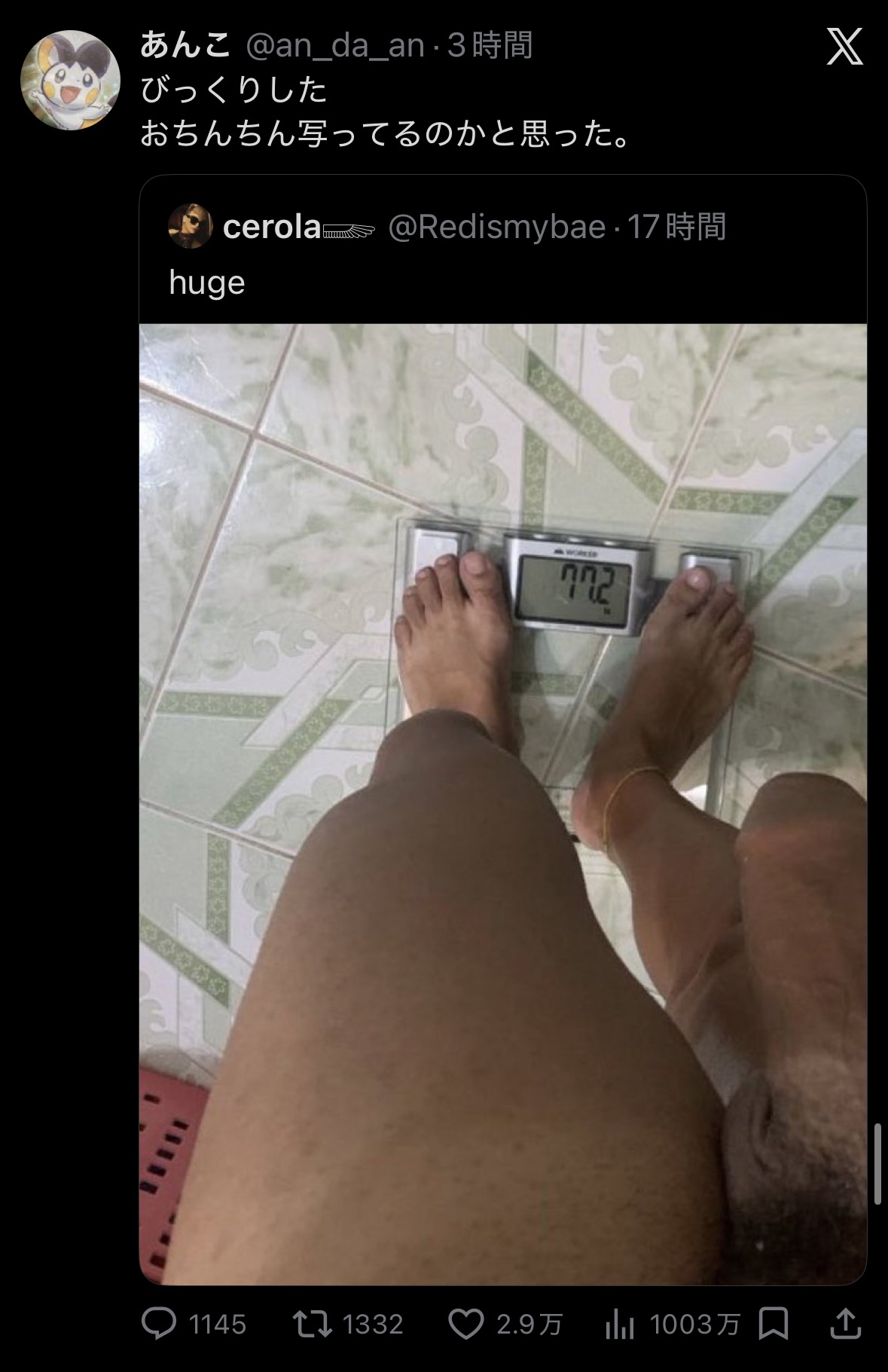 | … | 4626/02/21(土)17:28:29No.1404126215そうだねx2>そこそこデカく見えるけどそれで被ることあるんだ |