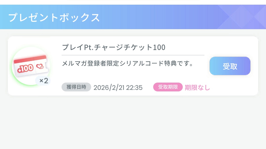 | … | 826/02/21(土)22:31:20No.1404236093そうだねx2メルマガがスタミナチケット付きなんですよ…! |
