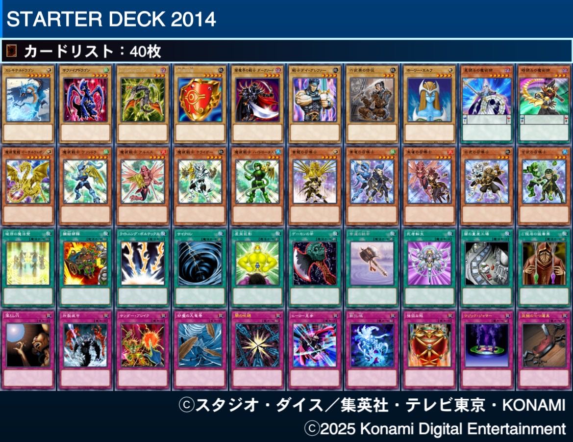 | … | 7926/02/21(土)23:39:16No.1404260830そうだねx1右上はこれの素体になるスターターデッキ2014も大分アレなのがポイント高い |