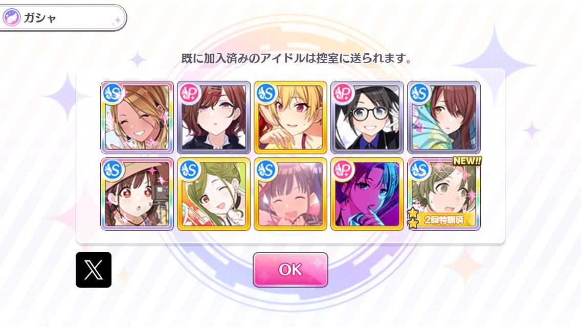 | … | 15326/02/22(日)01:21:27No.1404291345+なんだかんだカードが揃うとやるかぁってなるからPとSがガシャ合体したのは本当に良かったと思う |