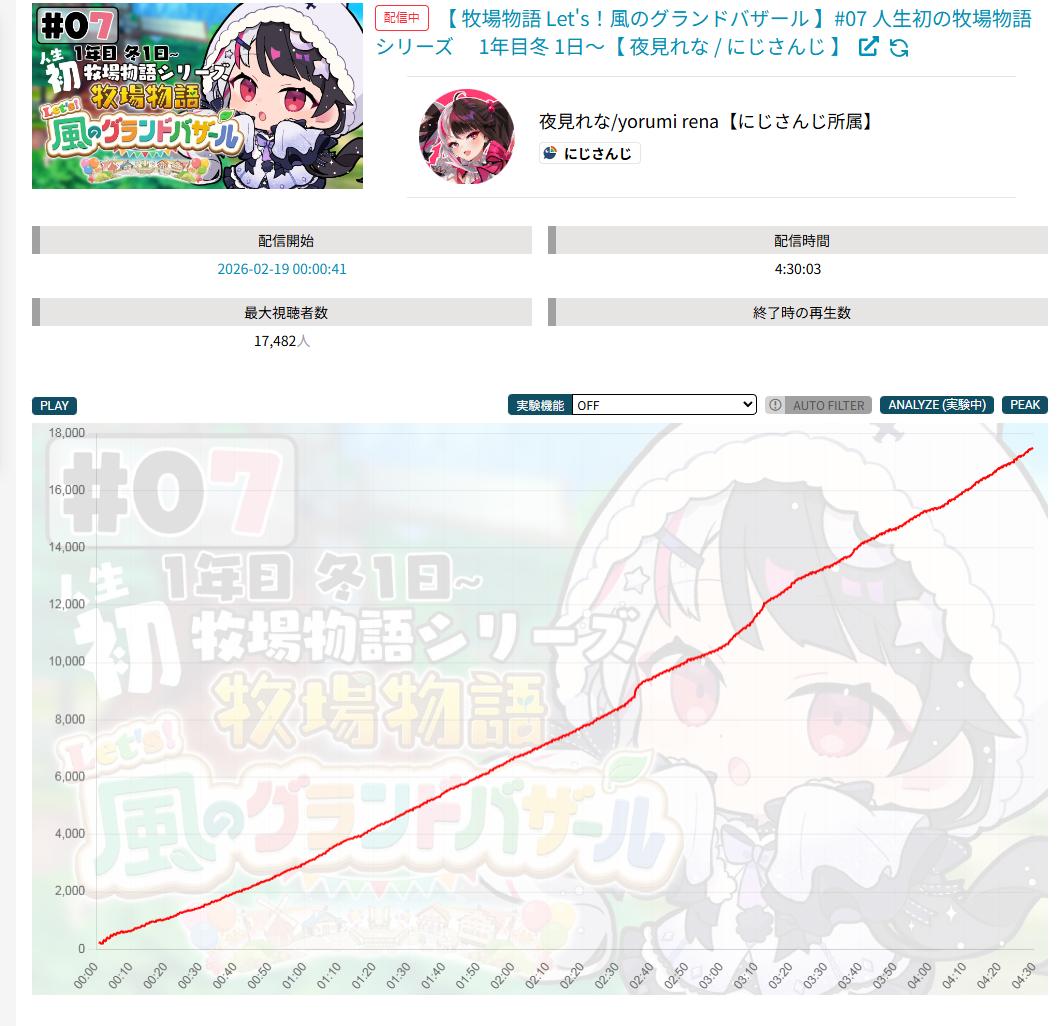 | … | 7626/02/22(日)02:16:52No.1404303610そうだねx3>>同接約1万人 |