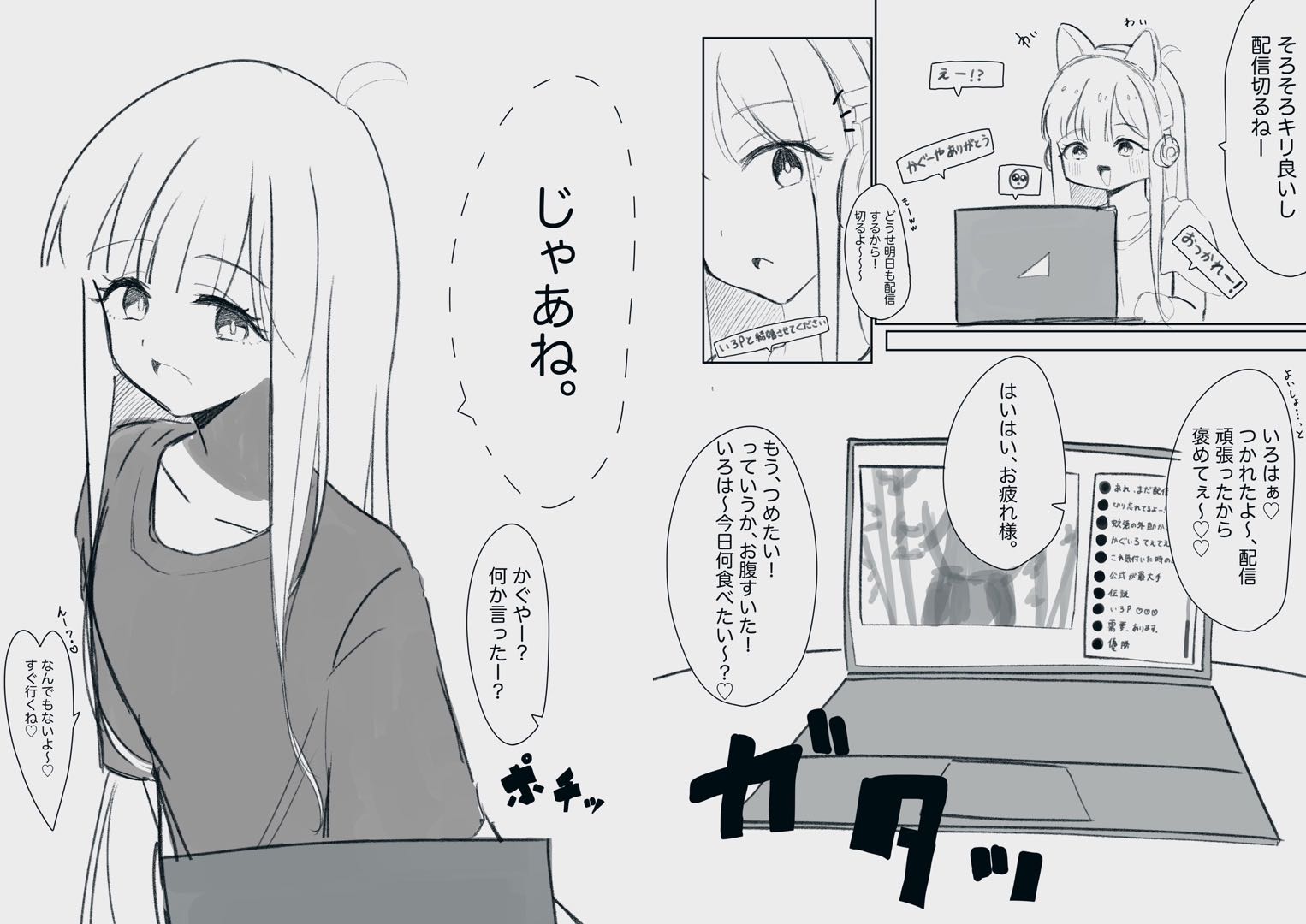 | … | 1526/02/22(日)08:22:01No.1404328613そうだねx1>かぐやは配信切り忘れと見せかけていろはとイチャイチャするのを絶対見せつけるって確信がある |