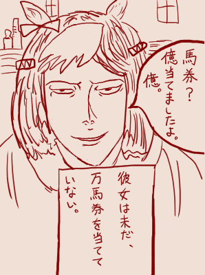 | … | 7426/02/22(日)14:53:18 ID:BIrhj3PUNo.1404432698そうだねx4私の妹をありがとうございますトレーナーさん!流石「私の」運命の人ですね!では! |