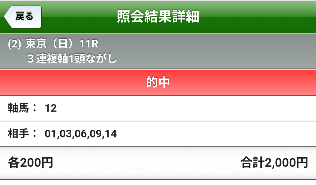 | … | 90626/02/22(日)15:54:02 ID:EOqdVIcANo.1404450730そうだねx8>東京11R 購入2000円 払い戻し2050円 |