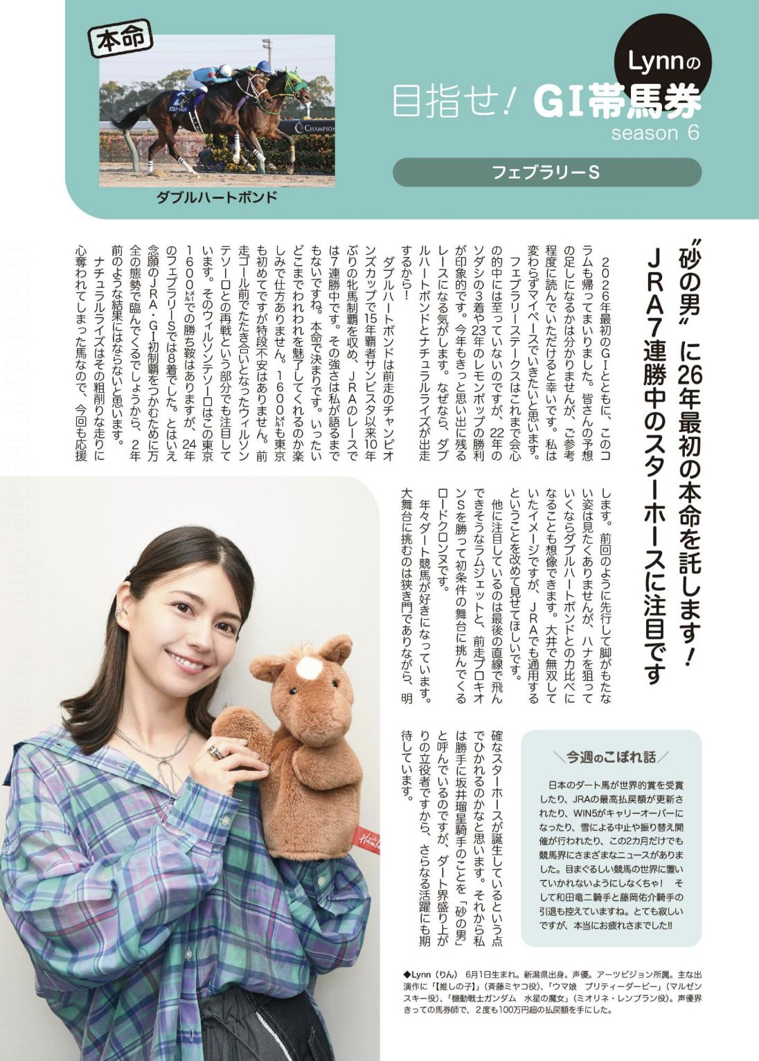 | … | 7626/02/22(日)16:00:25 ID:N0j/V00gNo.1404452475+>カチカチの三連複は当たりましたがダブルハートボンドの勝利が見たかったです |