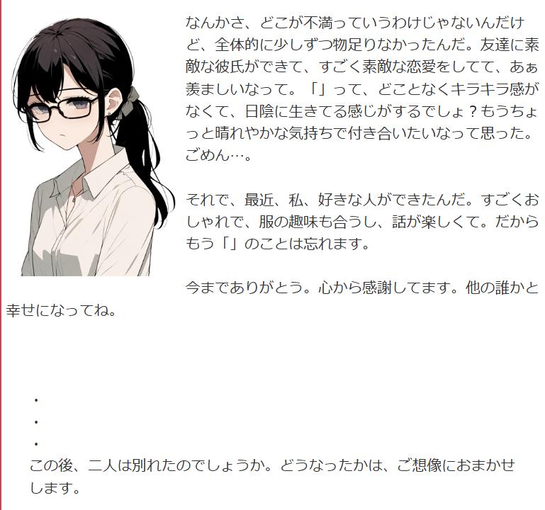 | … | 226/02/22(日)16:00:17No.1404452435そうだねx15架空の恋人にいびられて別れる診断のやつ |