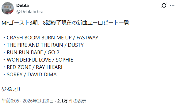 | … | 2826/02/22(日)19:19:56No.1404515218+>3期の新曲6つしか無いんだな |