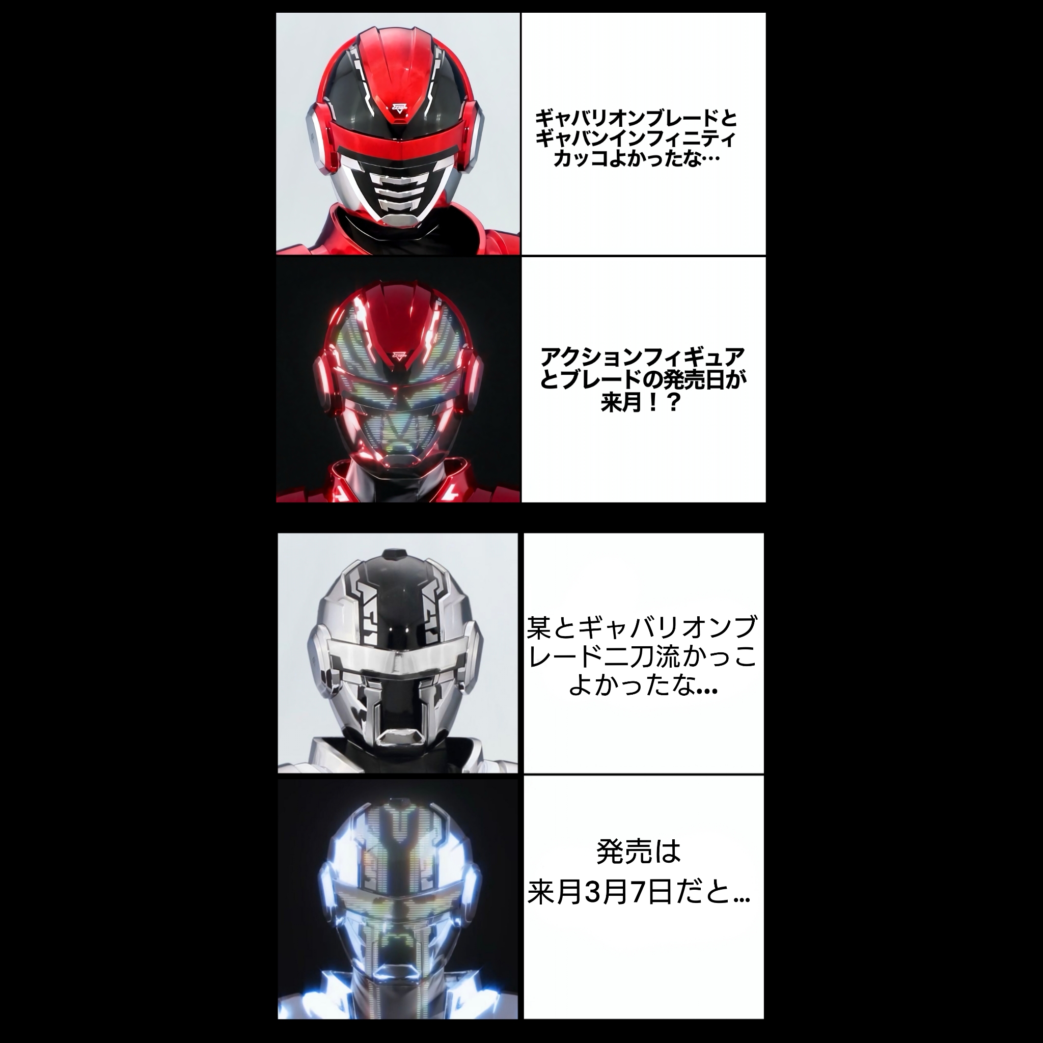 | … | 12026/02/22(日)19:27:59No.1404517999+黒いギャバンがデスギャバンなら紫は絶対毒ギャバンじゃん… |