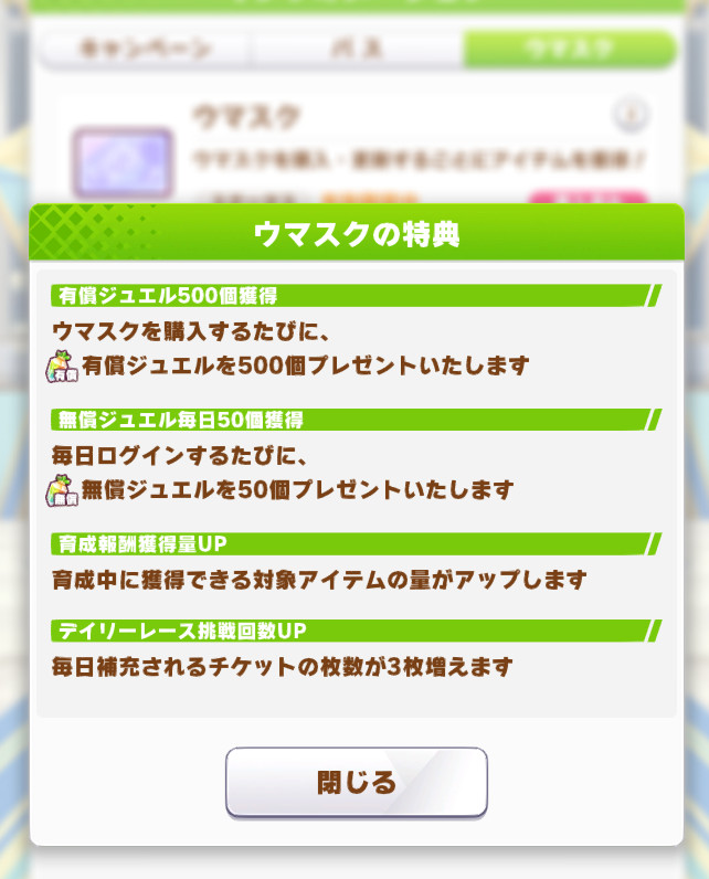 | … | 7326/02/23(月)01:42:57No.1404681087+始めたばっかりでアイテムもマニーもないからウマスク助かってるけど |