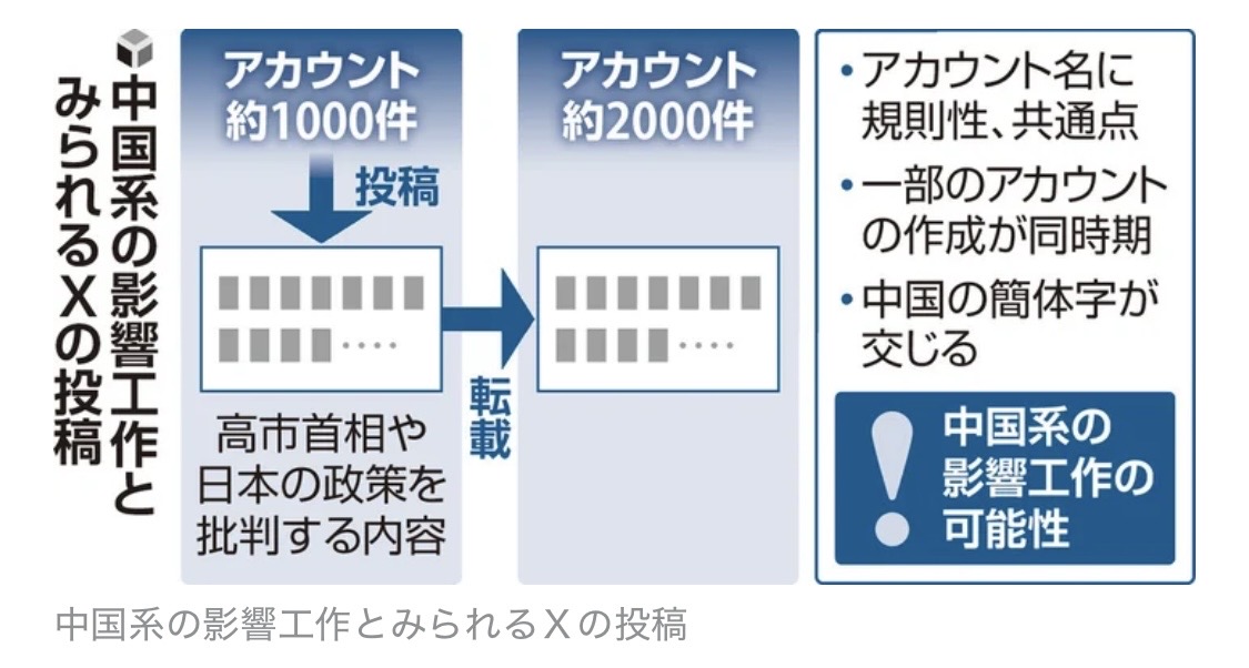 日本を批判するアカウント群3000件規模、X投稿・拡散…衆院選前から中国系の影響工作かこのスレは古いので、もうすぐ消えます。