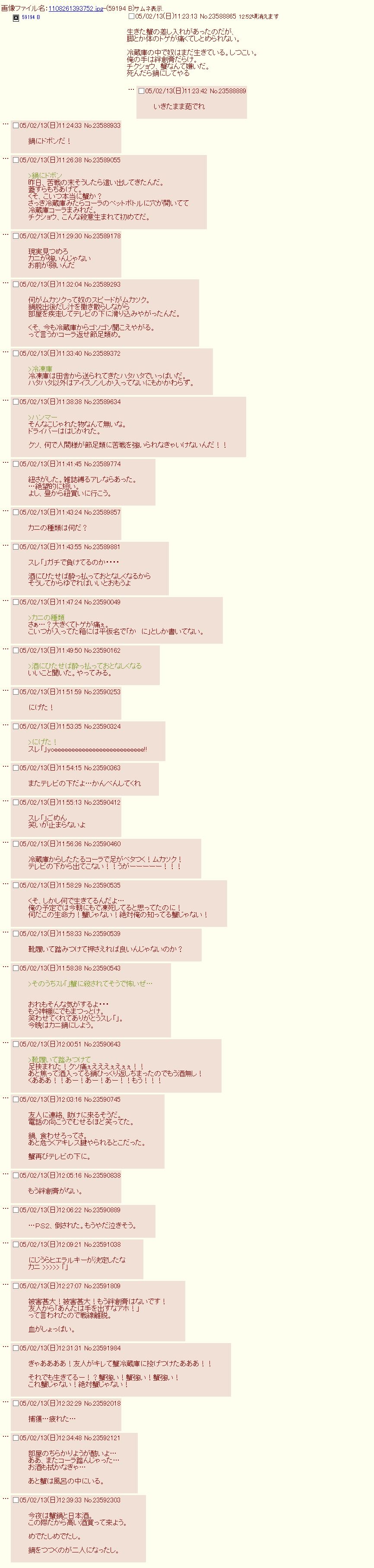 | … | 3126/02/23(月)19:34:30No.1404887473+カニだーーー!!! |