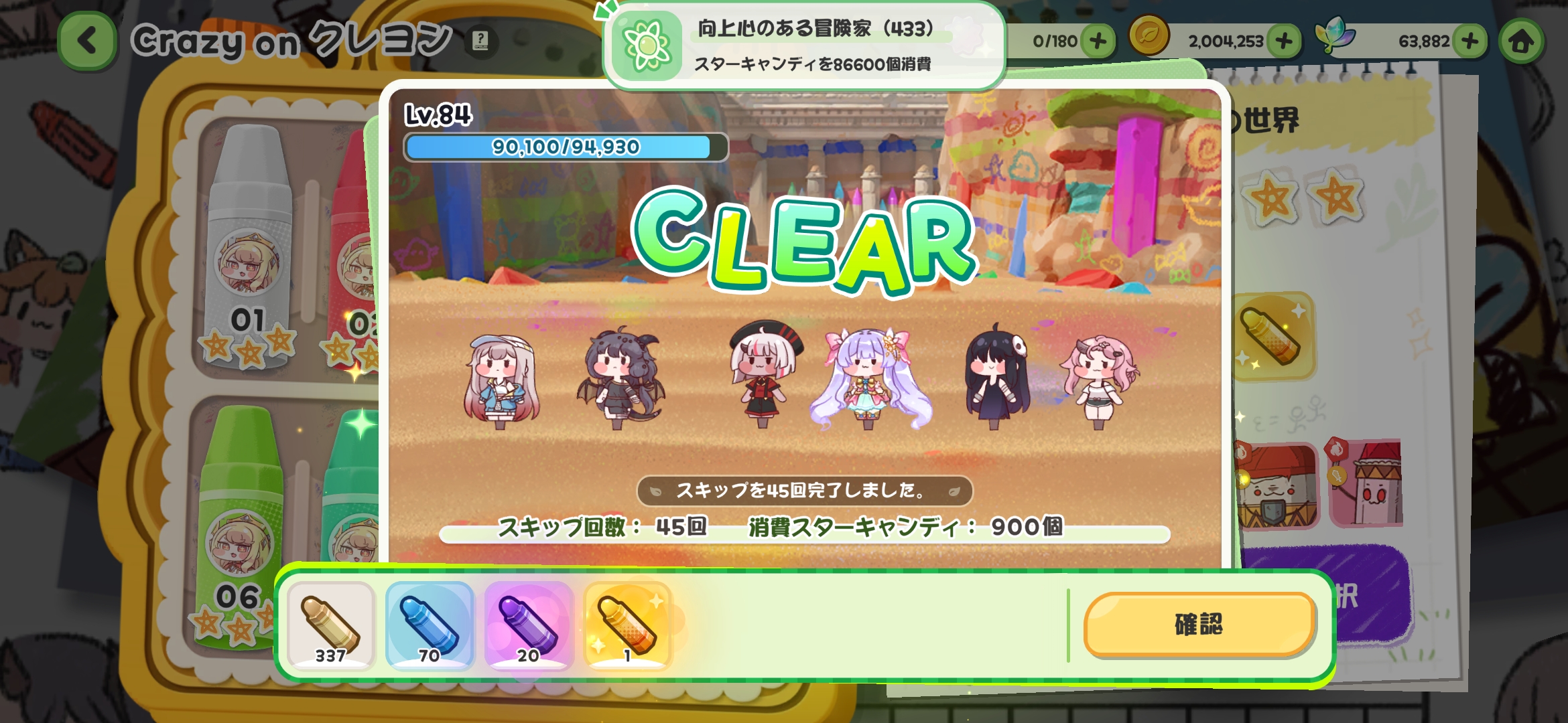 | … | 6026/02/23(月)20:52:03 ID:TSChd57oNo.1404925515そうだねx3最近スタキャンの月パス始めたけど配給とショップと合わせて150になってクローンとクレヨンやると10余るのが気持ち悪いにゃん |