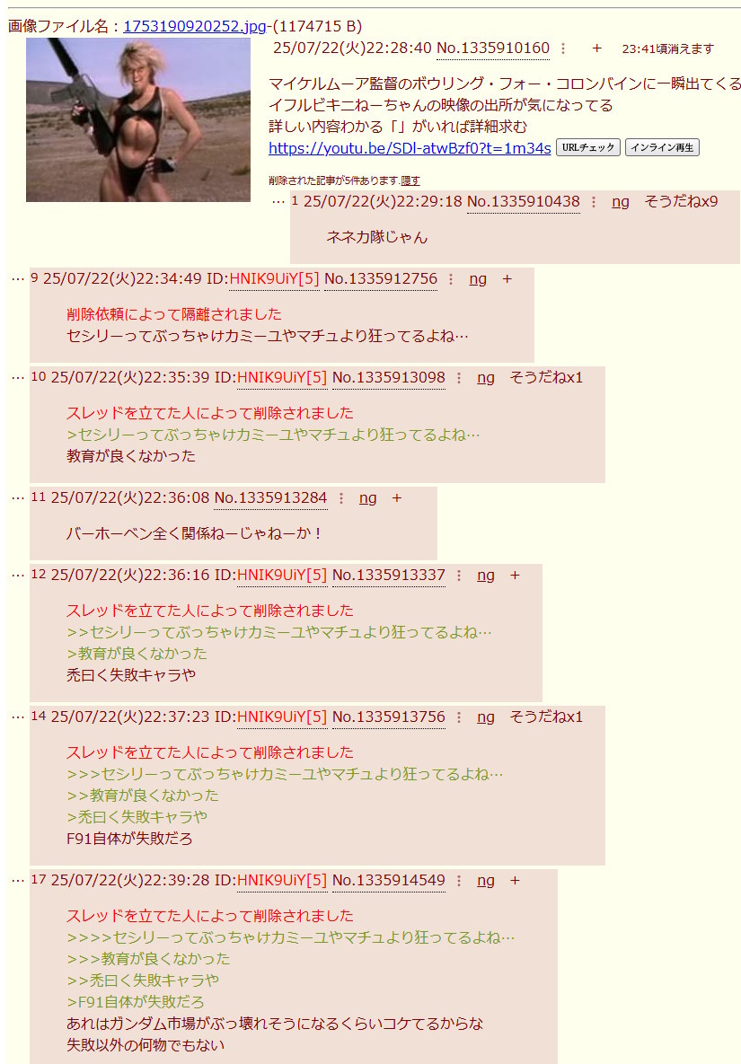 | … | 6426/02/23(月)22:23:49No.1404978750+そもそもなんでVとF91に粘着するようになったの? |