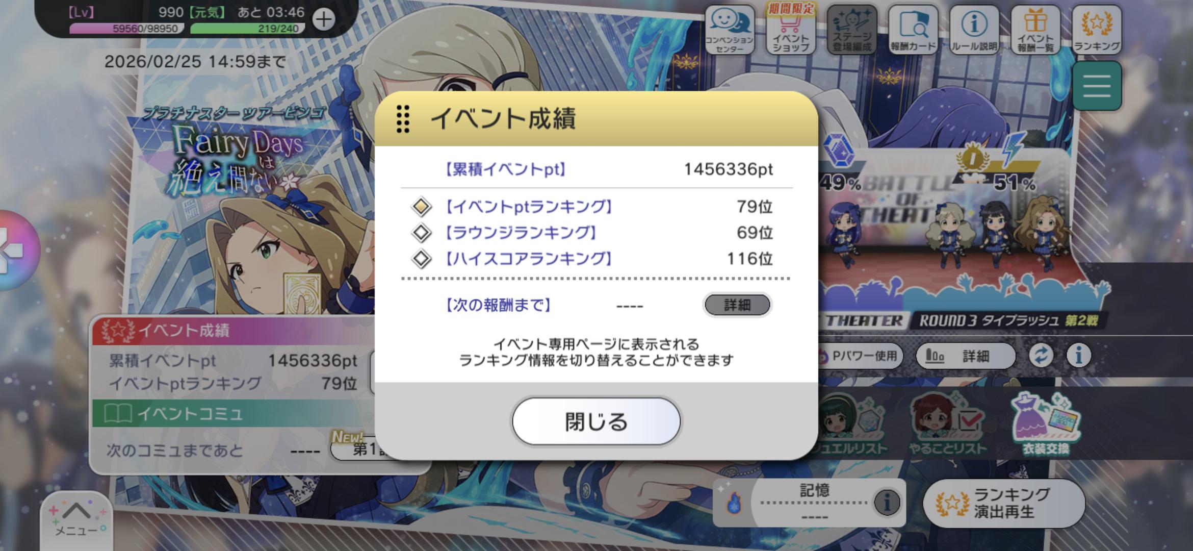 | … | 9426/02/24(火)13:14:43No.1405116982+>プロデューサーは5108位を狙ってくれないんですか…? |
