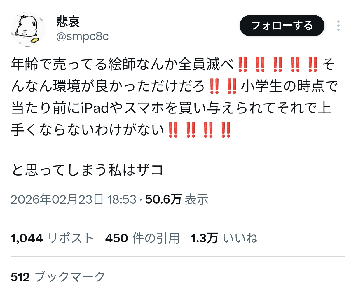 絵師界隈って若者への嫉妬すごいんだね