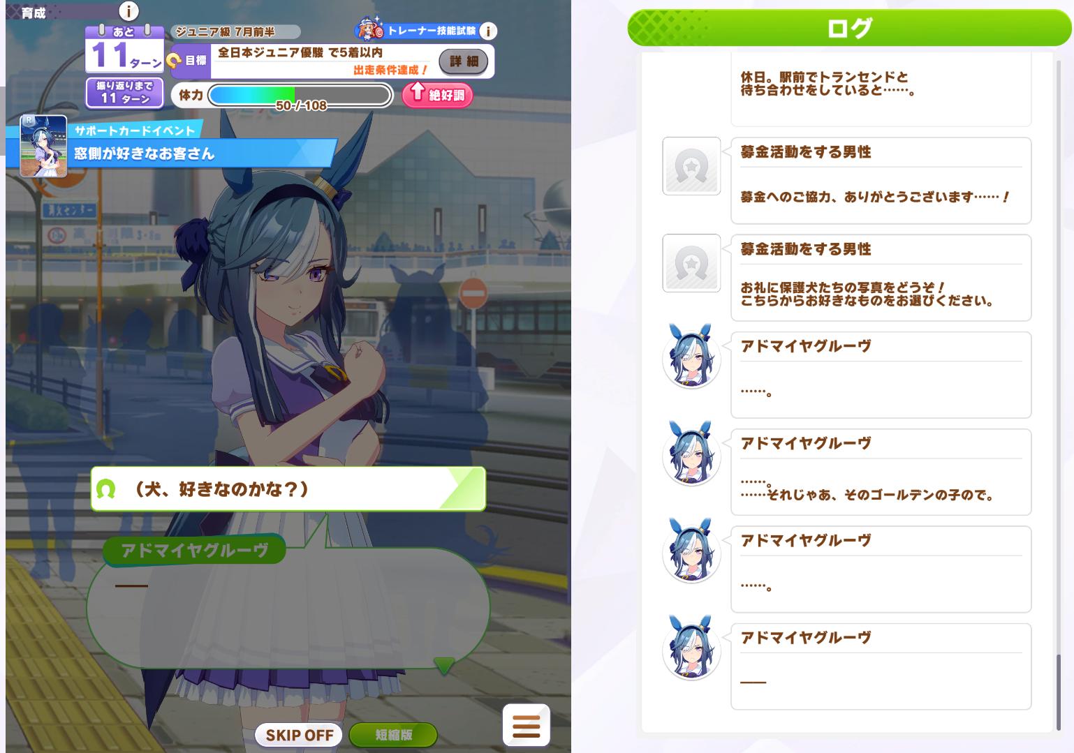 | … | 56626/02/24(火)18:12:46 ID:vMX19ky2No.1405182949+一周短めなのはありがたいですがチームの育成優先的なコマンドがないのでexcellent逃がしがたまに発生しますね |