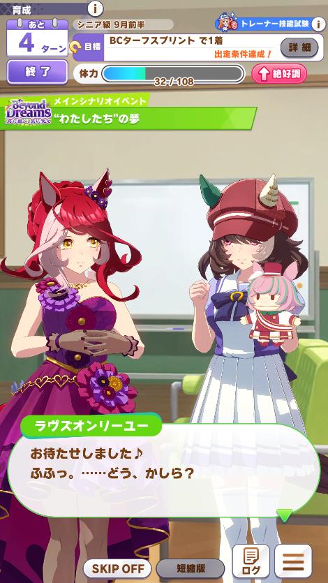 | … | 56726/02/24(火)18:12:48 ID:C6ISqNVUNo.1405182964+BCシナリオで新衣装来るならそりゃ初制覇のラヴズさんになりますよね |