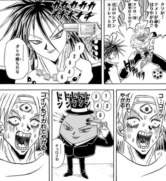 全く関係ないけどテメーも命張れや!って言われてロシアンルーレット涼しい顔で引き金5回引いてオレの勝ちだなする金天ボめっちゃカッコいいよね