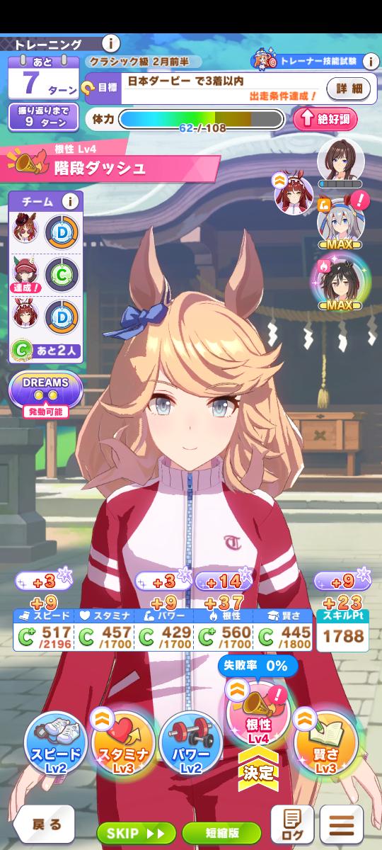 2回目で友情を上げて3回目で…左のステータスを上げないとスキルポイントがカンストしちゃいますね!